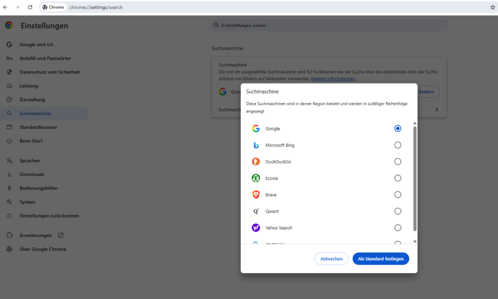 - Wer mehrere Suchmaschinen nutzen möchte, kann Google als Startseite festlegen, aber im Browser eine andere Standardsuchmaschine einstellen. So hat man beide Optionen.